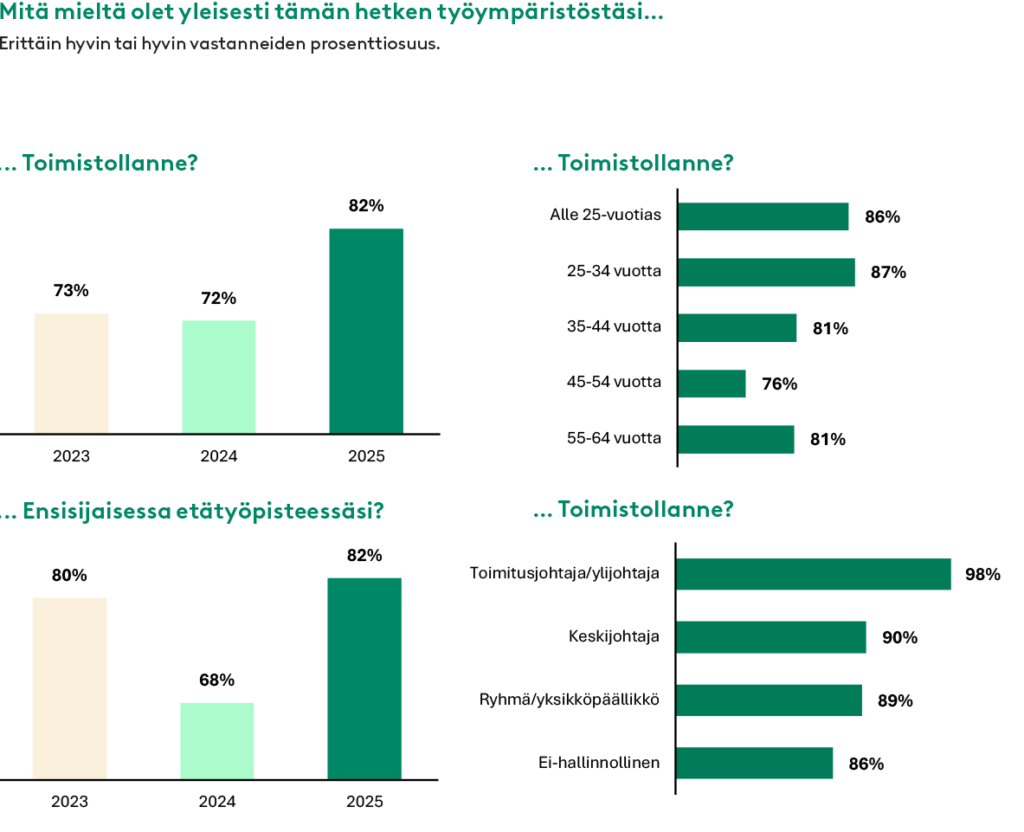 Tutkimus piirtää kuvan suomalaisesta työelämästä, joka on siirtymävaiheessa. Joustavuus on vakiintunut osa työtä, mutta sen muoto on jatkuvan neuvottelun ja keskustelun kohteena. Työpaikoilla haetaan tasapainoa yksilön vapauden, yhteisöllisyyden ja toimivien työtilojen välillä – tavalla, joka heijastaa työn tulevaisuutta enemmän kuin mikään yksittäinen trendi.