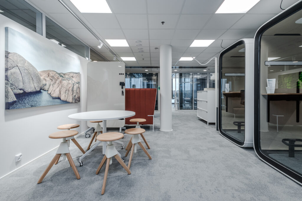 ”Uuden toimitilan konseptissa korostuvat avokonttorimalli, hybridi- ja etäkokouksille sopivat tilat sekä kohtaamispaikat. Meillä on nyt rauhallisia alueita, joissa voi tehdä keskittymistä vaativaa työtä sekä kohtaamispaikkoja, jotka mahdollistavat avoimen keskustelun, vapaamman kanssakäymisen ja tiedon jakamisen ” talousjohtaja Annika Söderholm-Karlsson kertoo. Lounge-alue on erityisen pidetty ja tarjoaa rentouttavan ympäristön vapaamuotoisiin kohtaamisiin ja kahvihetkiin. Etätyölle on selkeät säännöt, ja henkilöstö voi tehdä enintään kymmenen päivää kuukaudessa etätöitä. Erityisesti maanantaisin järjestetään ryhmäpalavereja, jolloin toimistolla on enemmän väkeä.