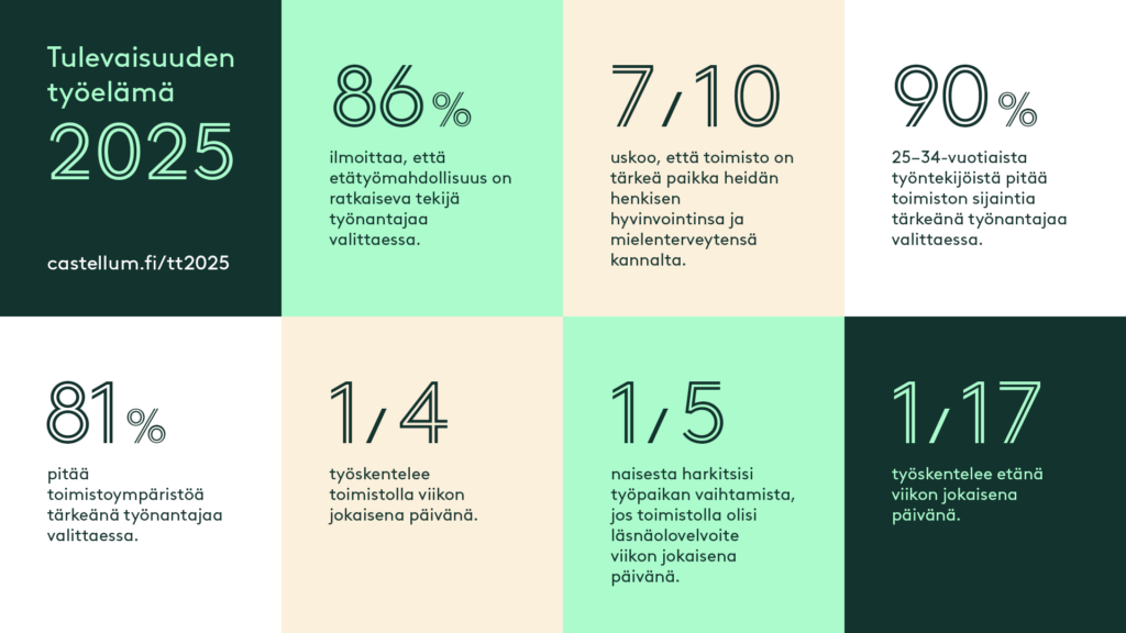 Tutkimusraportti sekä julkaisulähetyksen tallenne löytyvät: castellum.fi/tulevaisuuden-tyoelama-2025